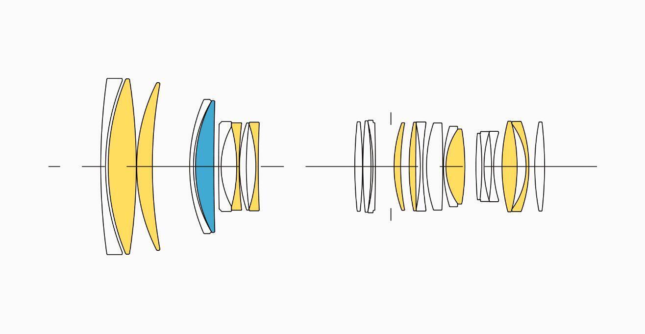 Để cung cấp khả năng điều chỉnh quang sai màu xuất sắc, tổng cộng có tới 10 thấu kính phân tán thấp độc quyền được tích hợp, gồm 9 thấu kính FLD (“F” Low Dispersion – Tán sắc thấp “F”) và 1 thấu kính SLD (Special Low Dispersion – Tán sắc thấp đặc biệt). Độ phân giải cực cao được thực hiện từ tâm đến các góc, làm cho ống kính có khả năng đáp ứng những nhu cầu khắt khe nhất của các nhiếp ảnh gia chuyên nghiệp trong các điều kiện chụp ảnh khác nhau. Bằng cách tối ưu hóa quang sai cầu, hiệu ứng bokeh mượt mà và tự nhiên được đảm bảo, làm cho ống kính trở nên hoàn hảo cho chụp ảnh chân dung.